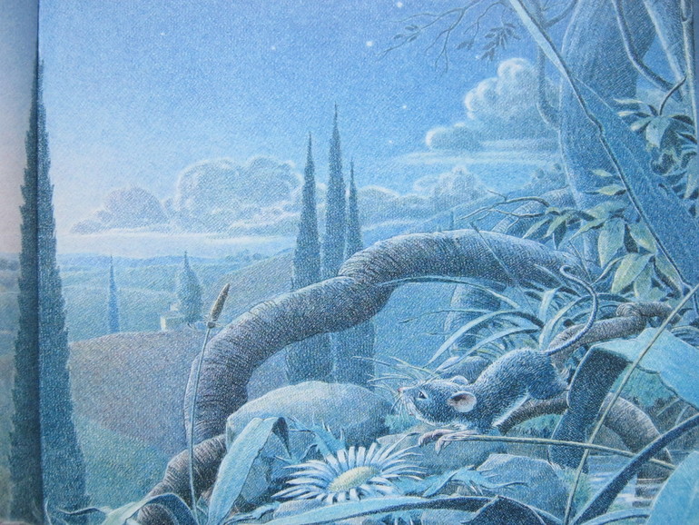 Иллюстрации просто восхитительны! Кроме прекрасных детальных цветных иллюстраций, почти на каждом развороте присутствует небольшой, тончайший и точный сюжетный рисунок карандашом, настолько тонкий, что кажется ажурной паутинкой на листе.