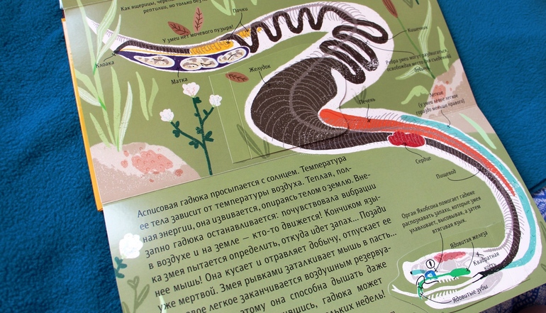 На самом деле интересная. Объекты исследования подобрали разные. Информация преподносится кратко, но понятно. Я вот не знала, что ёжик может гадюку слопать и что кожа акул покрыта крошечными чешуйками. Я трогала дельфина, так его кожа напоминает резиновую перчатку, думала у всех так. Еще белая акула яйцеживородящая - ее детеныши тоже из яиц появляются, но вылупляются у мамы в животике. Пишу-листаю и уже думаю - может зря я этой книжки перепугалась. Посмотрите сами фотографии и решите.