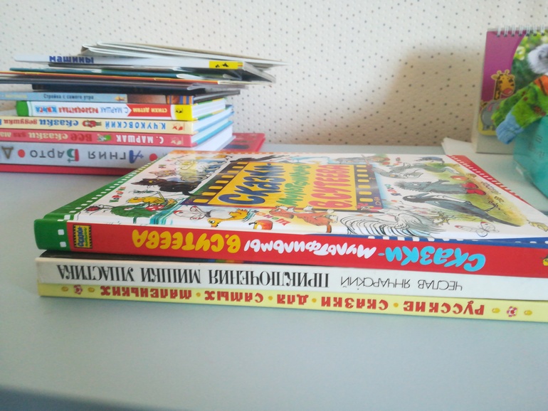 В этой стопке то, что читается каждый день. Купленные по отзывам здесь книги Шерри Даски Ринкер - хит у сына уже более 2 месяцев. Пора покупать про поезд, наверно))