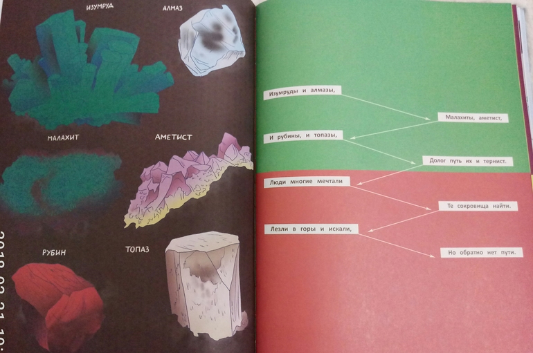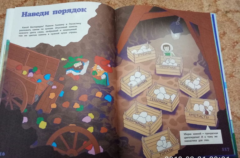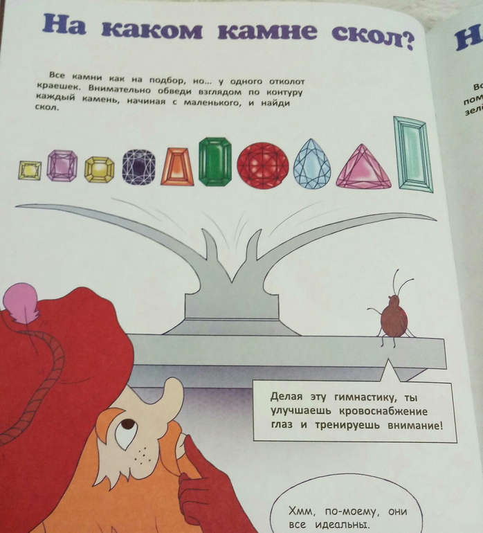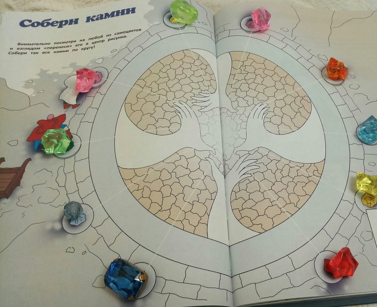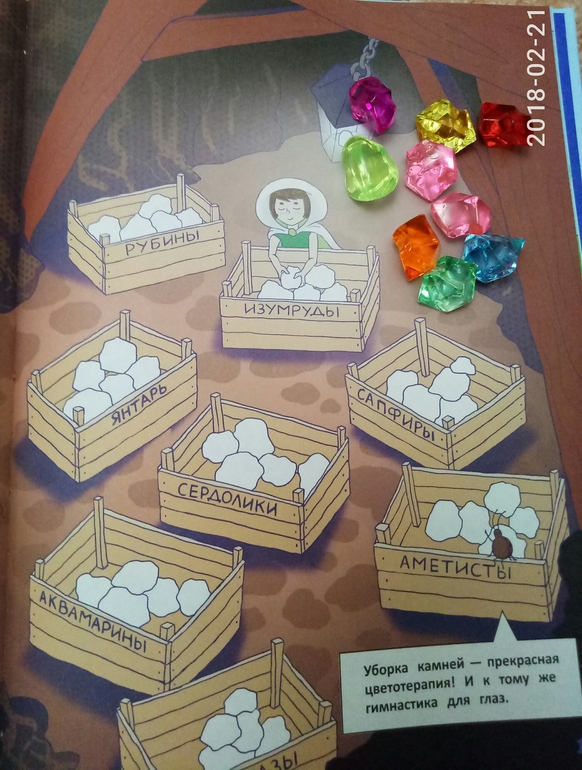 А дальше уже и сами задания, связанные с прочитанном текстом. В тексте, а потом и в заданиях, упоминаются самоцветы, так что горсточка разноцветных камешков из фикспрайса пришлась очень кстати)