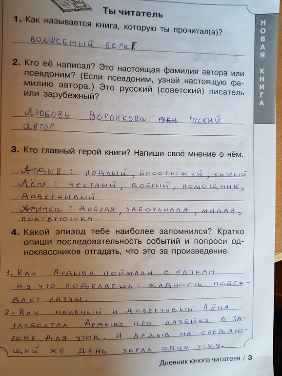 Люблю детективные истории)) я разгадала,кем был зверек Ардыв) Подскажите ,какой фирмы у вас читательский дневник? В школе у дочери обычная тетрадь, и дочь не любит ее заполнять.