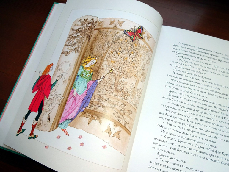 Перевод с итальянского Ю. Ильина, Э. Козаковой, в пересказе Н.В. Гессе, З.М. Задунайской - так же, как и в "Трех апельсинах", то есть ничего содержательно оригинального мы здесь с вами не увидим.
