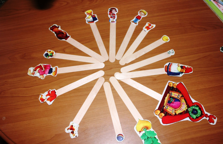 Театр на палочках. Мы тоже сделали. Только я использовала палочки от мороженого. И сказки были народные. Согласитесь - классная идея!