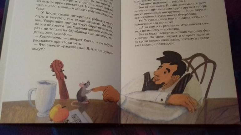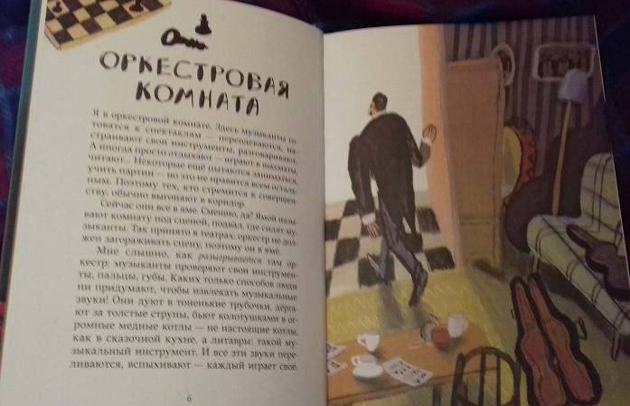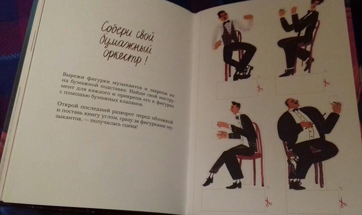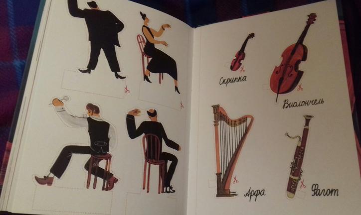 А еще в ней очень много музыки, музыкальной и театральной терминологии, которая очень органично вплетается в повествование. А в конце - бонус от художника: фигурки музыкантов симфонического оркестра и их инструментов, которые можно вырезать и придумать с ними собственную историю.