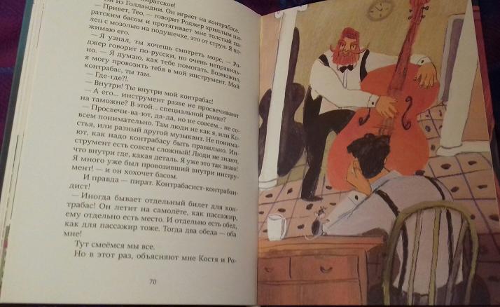 И вдруг театр уезжает на гастроли. Они едут к морю! Косте очень хочется порадовать своего друга, но он не может придумать, как его пронести в самолет. Выход помогает найти музыкант совершенно пиратской внешности, которого Тео жутко боялся. Он провозит мышонка...в своем контрабасе!
