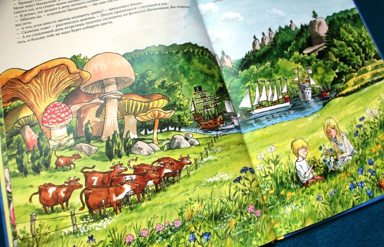 Сказка странная: вроде спокойная, но захватывающая, вроде про цифры, но с замечательным добрым подтекстом. И персонажи встречаются один другого краше. И весь мир Минуса (так зовут нашего героя) такой солнечный, интересный и фантазийный. И если вдуматься, то эту сказку я уже слышала: в детстве, когда бродила за деревенскими огородами или шла из школы, а еще вчера и на прошлой неделе, когда сын начинает свое что-то воображать. Наверное, эта сказка не благодаря грибам появилась все же, а ее создало совершенно детское воображение. Ну как это возможно?!