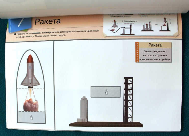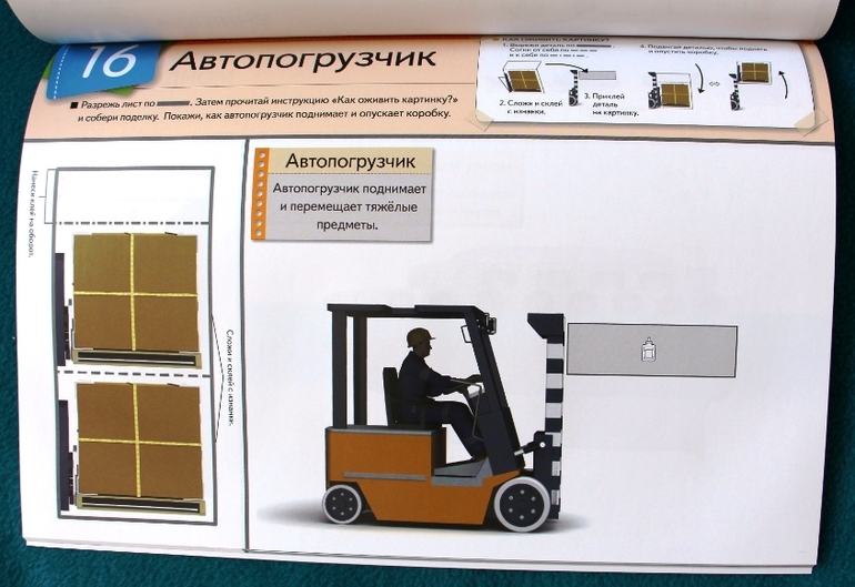 Тетрадь про Транспорт и технику состоит из 30 листов-единиц техники. Здесь есть всевозможные машины, спец. техника, водный и воздушный транспорт, даже дельтаплан и подлодка. Самая необычная для меня это Библиобус - библиотека на колесах. Движения разные: ракета взлетает, пожарная машина тушит дом, снегоуборочная снег отбрасывает, погрузчик поднимает груз и т.д.