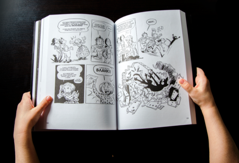 Села я уютненько почитать, но сын не оценил идею, в итоге пришлось подвинуться и читали мы её вместе. Конечно он не всё понимал, я объясняла всё в силу своих возможностей, но радости от прочтения было море. На следующее утро я проснулась от хохота, это сын, на тот момент ещё не читающий, озвучивал картинки и вспоминал то, что мы прочитали вчера. Последующие несколько недель книга жила у сына в кровати, просматривалась по несколько раз в день.