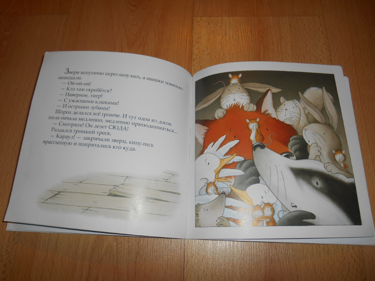 Я наверно переборщила с эмоциями и выражением при чтении книги или просто у нас возраст такой. Сейчас дочка уже читает ее спокойно, ищет зверят на предпоследней странице.