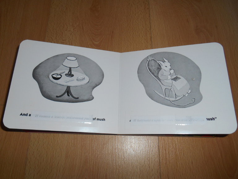 Она тоже у нас на английском языке, но читаем мы ее тоже на русском. Много слышала отзывов, что дети засыпают под эту книгу. Типа, чередование цветных и черно-белых иллюстраций детей усыпляет. Ну-ну! Точно не наш случай. Но… книга классная! Добрая и уютная! Мы ищем мышку и просто рассматриваем интерьер комнаты.