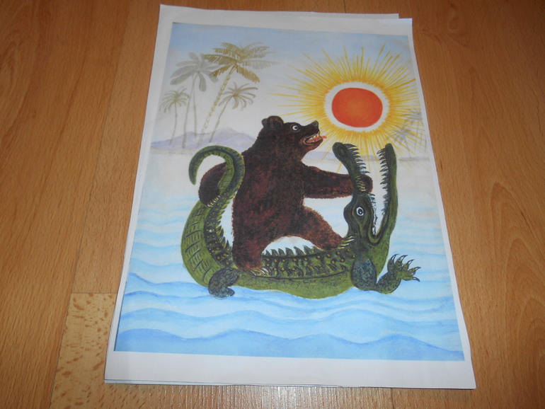 Я распечатала «Краденое солнце» с рисунками из моего детства. Ну красота же! Медведь мне особенно нравится! Брутальный такой!)))