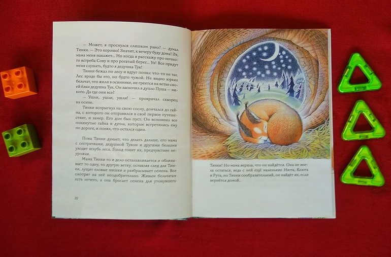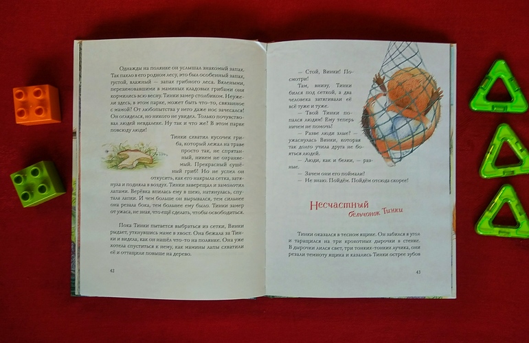 Хоть герои сказки и разговаривают между собой, но по сюжету они зверьки, не ходят на задних лапках, не носят одежду и не имитируют людей. Даже наоборот, очень интересно в книге описаны повадки и образ жизни белок: где и как они живут, что едят и как делают запасы, как спасаются от врагов в природе.