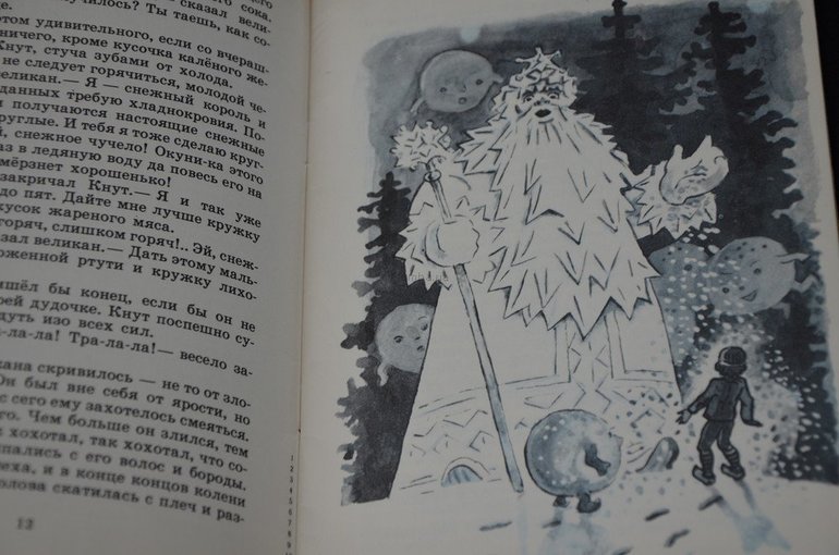 Кнут бежал так быстро, что от горного короля из летнего леса добежал до ледяного дворца снежного короля, который собрался угостить его мороженой ртутью и превратить в снежный шар. Кому бы это понравилось? И Кнут заиграл на своей дудочке веселую песенку, а все снежно-ледяное великолепие полопалось от смеха...