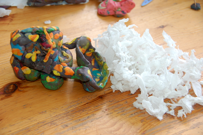 Сегодня с утра играли в "завалило снегом" )) Слепили бульдозер в веселое пятнышко, нарвали салфеток и убирали снег ))