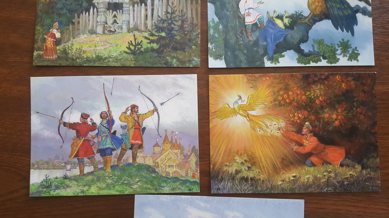 А я подобрала для отправки открытки из Котофеев и открытки с иллюстрациями Николая Кочергина к волшебным русским сказкам. Вот эти уже были отправлены: