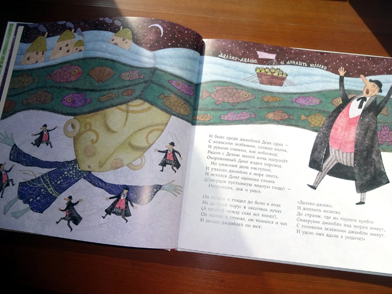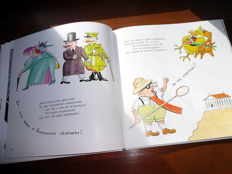 Антоненков здесь совершенно великолепен, идеален, он чувствует себя просто как рыба в воде. Как говорит сын: "Как можно так красиво и изящно нарисовать самых невероятных уродцев?" - самых обаятельных уродцев на свете! Острое сожаление вызывает только то, что книжечка быстро заканчивается. Вот бы нам большой сборник Эдварда Лира с такими иллюстрациями... А? Ну пожалуйста... :-)