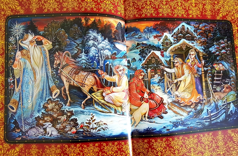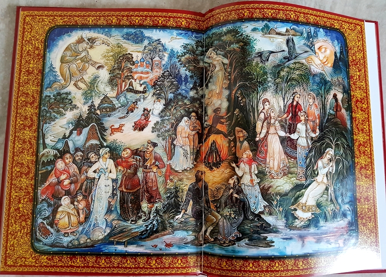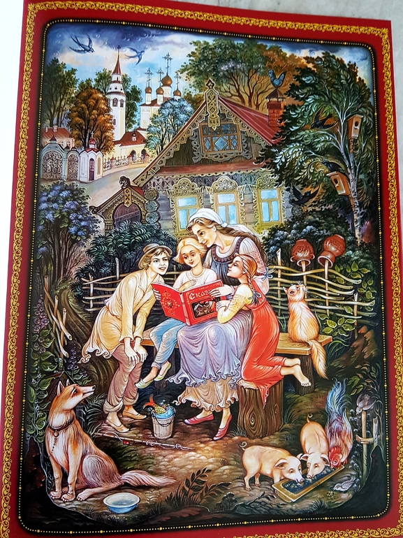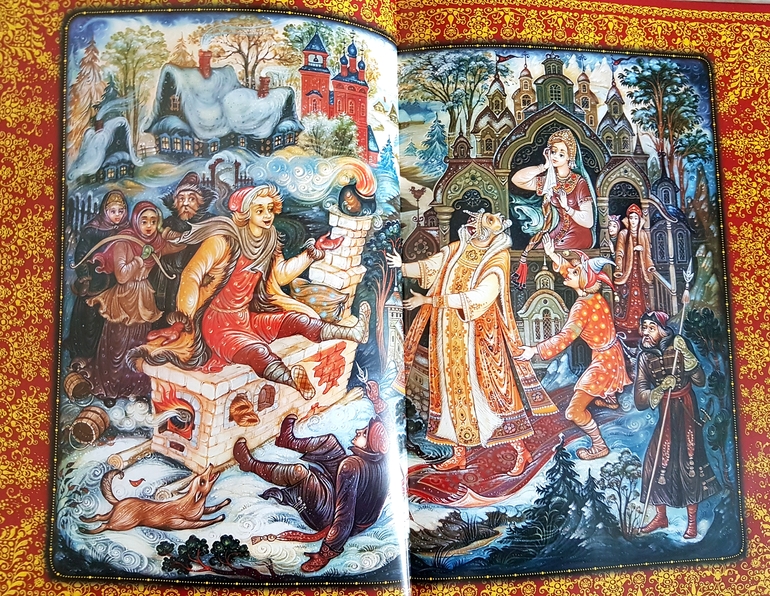 я купила большой альбом с Палехом и Холуем, как раз можно выбирать из них иллюстрации к сказкам.