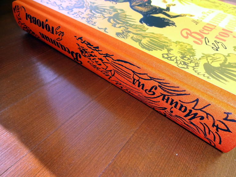 Обложка роскошная! Стильная и приятная на ощупь. Тканевый корешок, каптал, ляссе, цветной обрез (с 3-х сторон). Томик солидный, тяжелый, но все-таки не настолько, чтобы нельзя было читать, держа его на коленях или в руках.