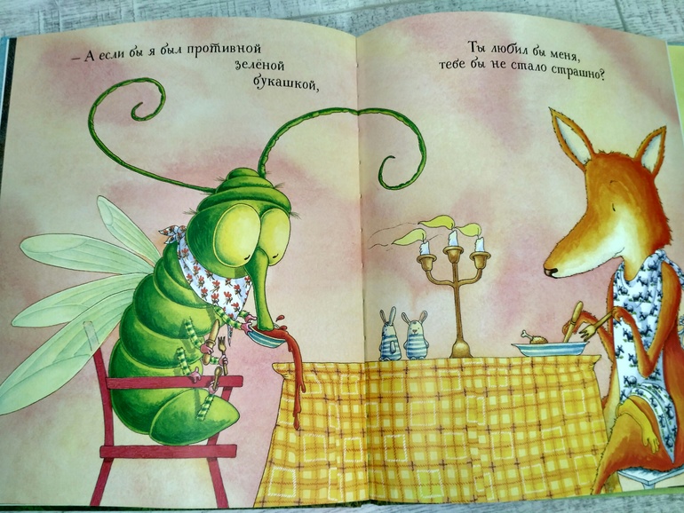 Но Большой на все его выпады и предположения отвечает "Я люблю тебя все равно " Даже если малыш превратится в противную букашку или злого крокодила родители его любят! И капризного, и упрямого и непослушного! Любого!!