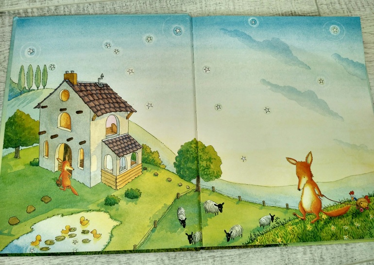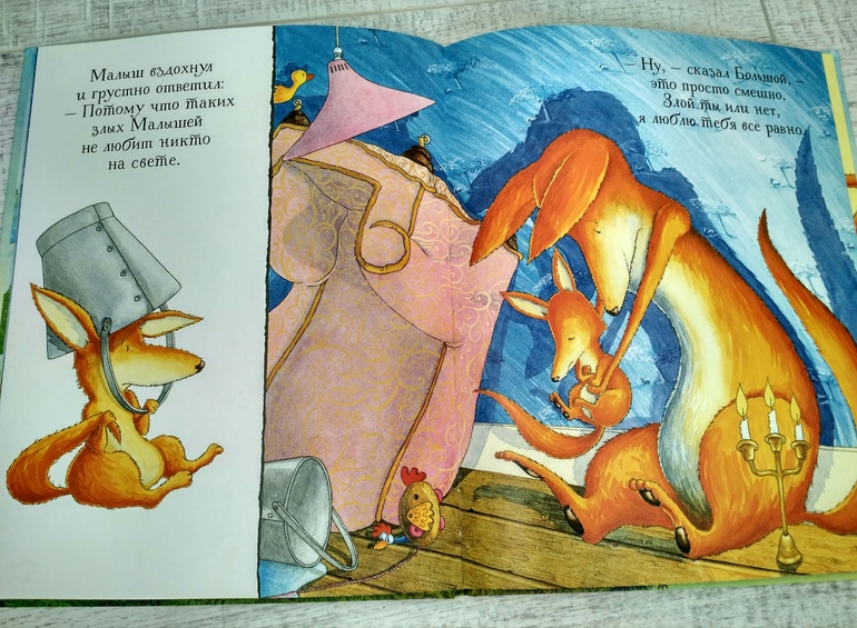 Я уже как то писала, что несмотря на маленькое количество текста книга все таки не для малышей. Но Даша слушает и понимает, то что доступно её возрасту. Аня перед сном слушает вместе с нами и думаю вот как раз ей понятна глубина стихотворения. Сказка о том, как однажды вечером малыш задумался о родительской любви, засомневался в ней. Он с волнением говорит " таких злых малышей не любит никто на свете!"
