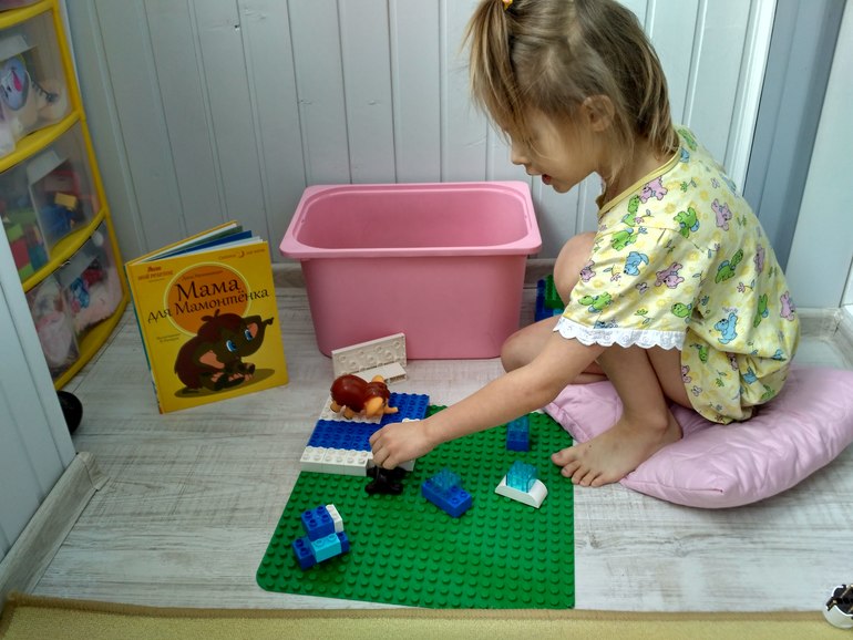 Аня увидев свою "детскую" книгу очень обрадовалась, послушала с нами и решила показать нам спектакль!! С удовольствием его посмотрели, спели вместе песенку мамонтенка.