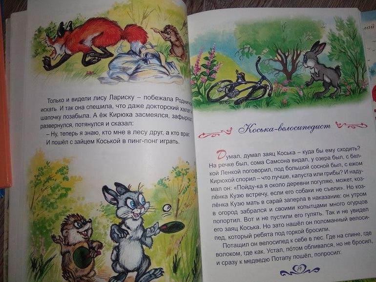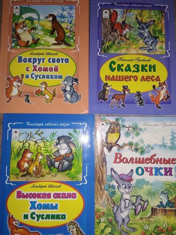 Хит лета у нас были рассказы про зайца Коську Н.Грибачева. Сейчас ждём лета и снова эти рассказы просматриваем, вспоминаем, перечитывали. Когда осваивали велосипед, не обошлось без падений - плакать не стали - вспомнили Коську и поехали дальше). Рассказ "Как заяц Костка наперегонки с ручейком бегал" в ненавязчивой форме повествует о круговороте воды в природе. О Хоме и Суслике А.Иванова не все рассказы пошли: некоторые для понимания ещё рановато. Данные книги издательства Алтей приобретала на Почте России и в магазинах Fixprise.