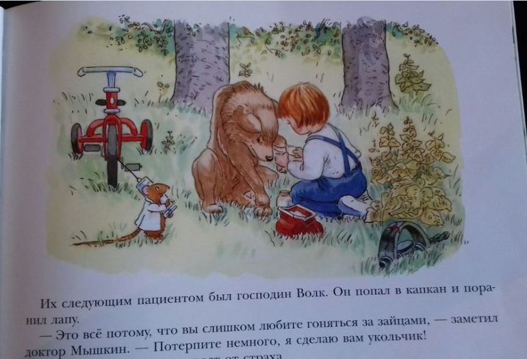 Доктор Мышкин это мышонок, который любит делать уколы и лечить только таким способом.