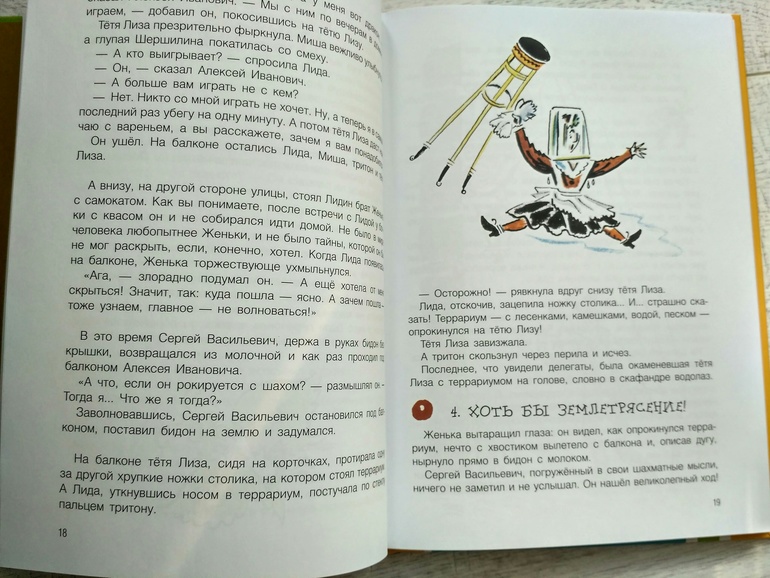 Очень динамично, живо, захватывающе! Особенно понравилась ситуация, когда Лида желая заработать деньги на покупку тритона, которого сама же скинула с балкона, решила устроиться поработать на стройку, и строители дали ей задание купить ведро кваса. Отстаяв очередь, девочка получила полное ведро, а деньги оказались на дне ведра! Как их оттуда достать?? Мальчишки в очереди не расстерялись, начали пить из ведра квас, выпили весь и вот она монетка!!