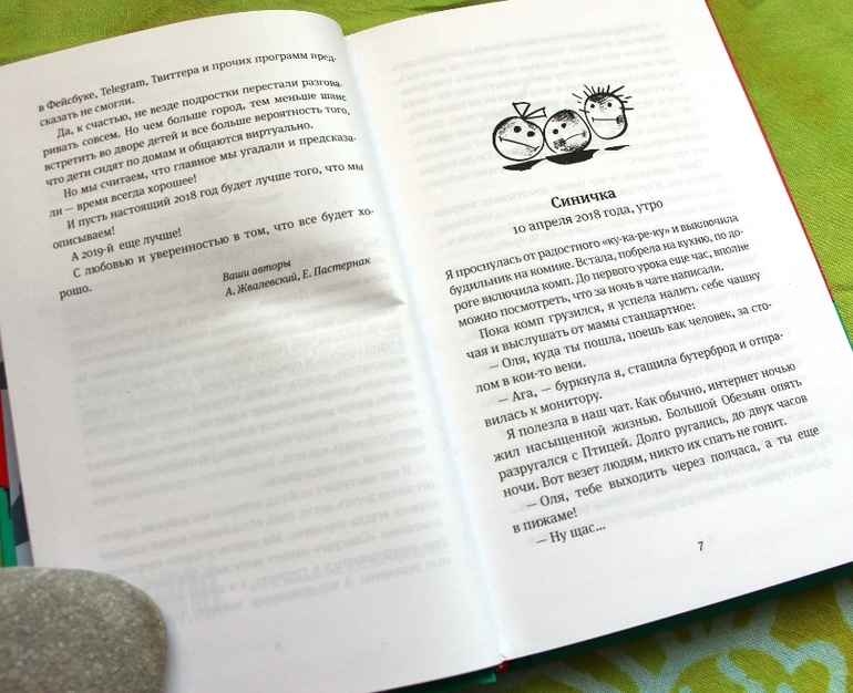 Кстати, это редкость даже в книгах по детской психологии, но здесь авторы, через своих героев, четко дают понимание, как надо исправлять ситуацию. Нет, не книжную ситуацию, а нашу настоящую. Ведь вы тоже, как и я переживаете, что дети мало двигаются, мало читают, не видят смысла в учебе, не хотят гулять, им трудно отвечать на уроках, потому что они теряют навыки общения, ведения беседы. У меня, во всяком случае, появилось несколько идей.