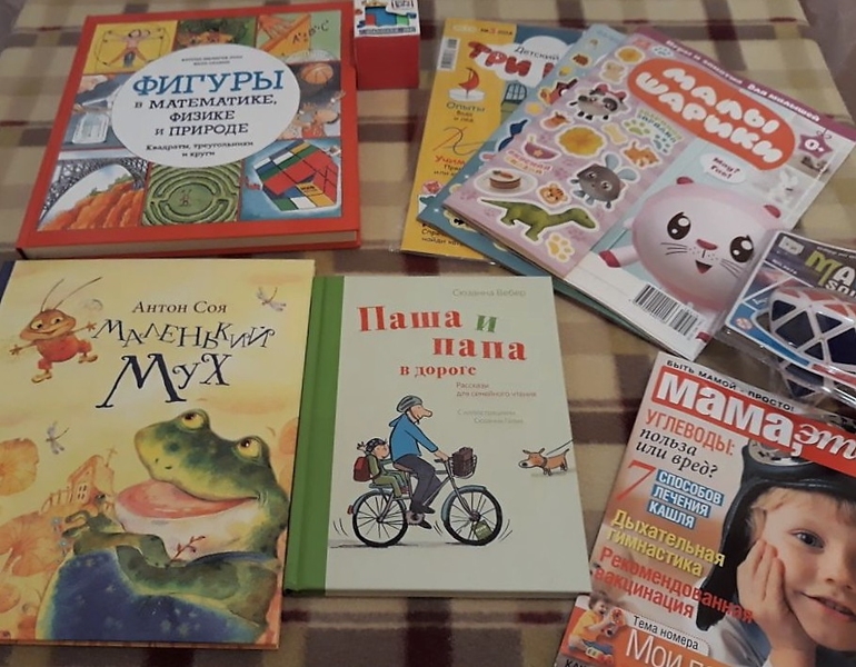 Пришла книга про Пашу и папу. Будем читать. Еще математика. Ее постепенно изучать будем. И Мух для настроения. Позитивного настроения))) Журналы за март.