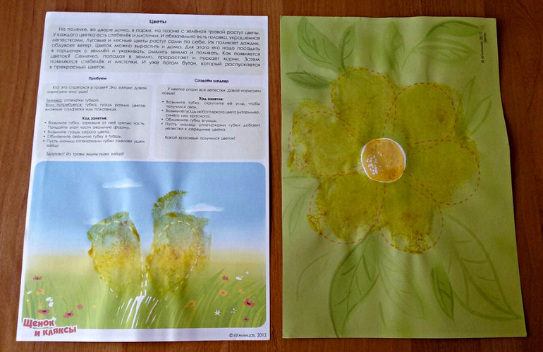 Также в наборе есть задания на обрывную аппликацию, рисование губкой, раскрашивание ватных дисков и многое другое.
