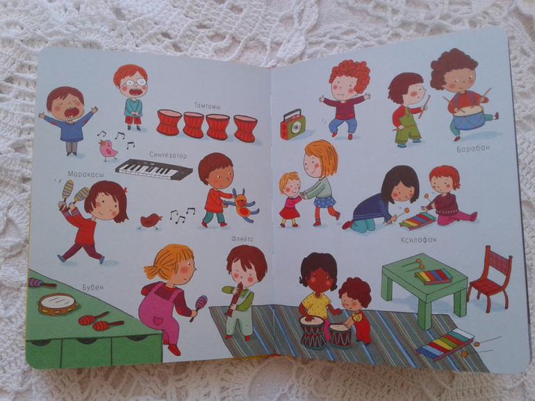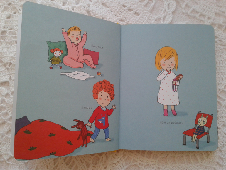 Вся книга ( 2 см плотных страниц)-- это история одного дня из жизни малыша.