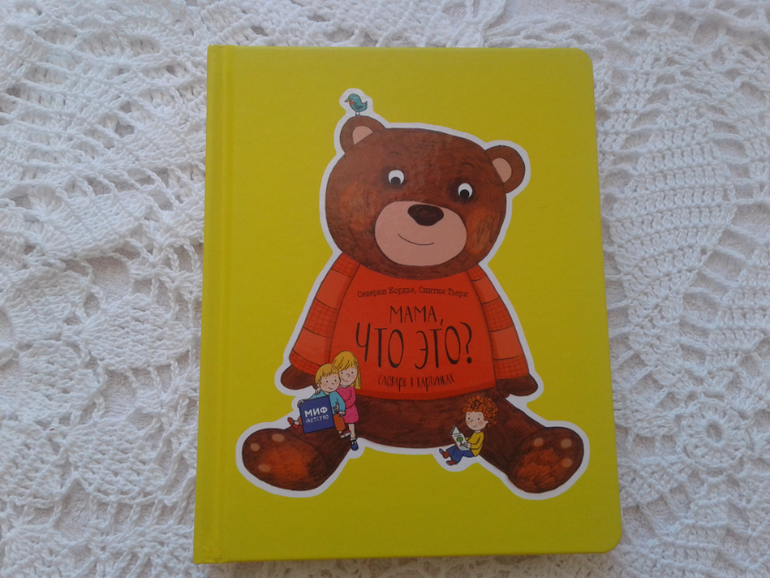 Всем привет))). Я неделю лежала с высокой температурой. Как только температура чуть сбивалась сразу начинало болеть горло....Никогда так сильно и долго не болела....Старшие дочки все понимают, а вот малышка требует книжки!!!!! Усердно подсовывает мне в кровать любимого "Петю и Потапа", "Груффало" , "Кто сначала...."...Я даже пару раз получила книгами то в лоб, то в щеку....Маленького книголюба жалко, но связки не настроишь....Ко всему этому еще и Лабиринт новые книги привез........А я без голоса...ррррр.....Спасла меня новинка от издательства Миф " Мама, что это?"