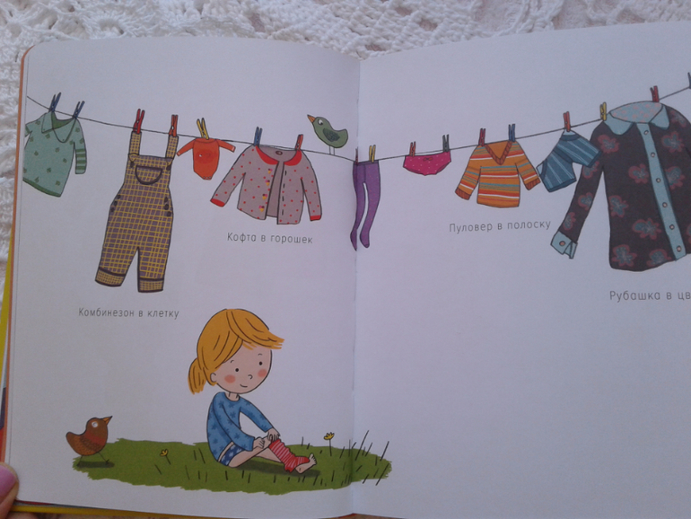 Есть серии иллюстраций про утро, завтрак, одежду, обувь, личную гигиену, игрушки, прогулку, обед, погоду, время года, вечерние игры и сон.