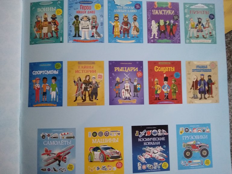 У нас такие "Мотоциклы" и "Пиратские корабли". Не очень пошли, я и сама с трудом там понимаю,что куда клеить. Наклейки часто не совпадают с размером . Из девочковых очень понравился "Кукольный домик". И вообще,уже почти всю эту серию переклеили. Ищу что-то подобное,а то очень уж мы их любим.