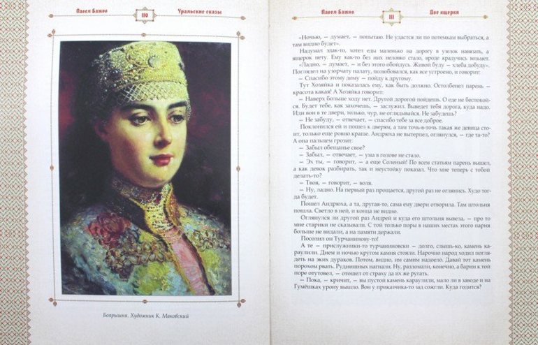 Книга проиллюстрирована картинами известных русских живописцев, которые, как и сказы П. Бажова, передают душу, образ и быт русского народа.