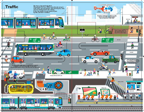 Удивительные подробности и занимательные факты о жизни большого города! Прогулка по ярко освещенным улицам, отдых в парке, поход по магазинам, рассказ о том, как делают шоколад и футболки, экскурсия на стройку и главную площадь - все это ждёт вас на страницах нашей книги! Здесь можно прокатиться на автобусе, подняться на лифте на самый верх небоскреба, посетить музей, библиотеку или бассейн - более 50 подвижных элементов сделают экскурсию в мир мегаполиса незабываемой!