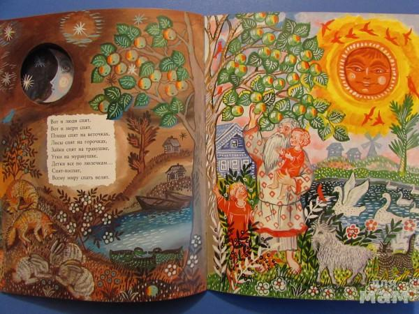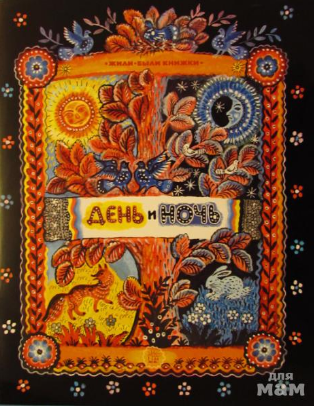 Книга очень оригинально оформлена. На каждом развороте этой книжки встречаются день и ночь.