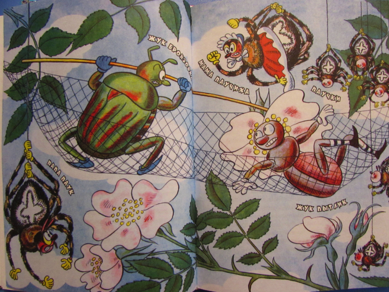 В книге есть сноски с описанием внешнего вида, образа жизни и поведения разных жучков и паучков.