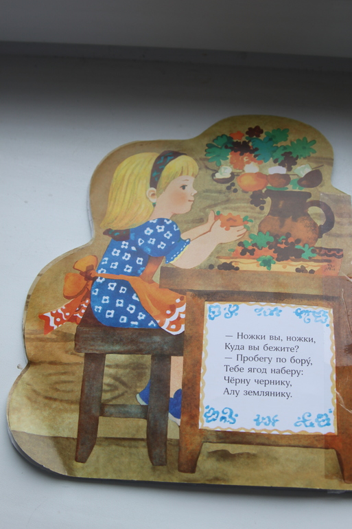 Маленькая, из плохонького картона, покусанная сначала Танюшкой, потом Ванюшкой. Она тоже любима. Сын играет с ней, смотрит,и по песенке каравай пытается выполнять несложные движения. Странички показывать не буду, больно уж вид не эстетичен.