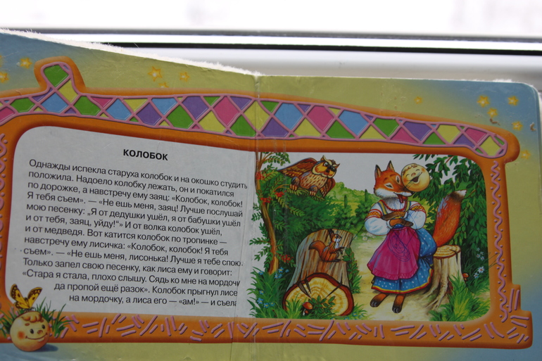 А содержание не замысловатое. Сказки русские народные, но в сокращении. А это не очень интересно было дочери, поэтому она ее не слушала. Другое дело Иван, непоседливый от природы и подвижный, как большинство мальчишек, он не слушает повторы (я от дедушки ушел...., и так 5 раз, каждый раз с новым героем), а вот в таком сокращении заинтересовался.