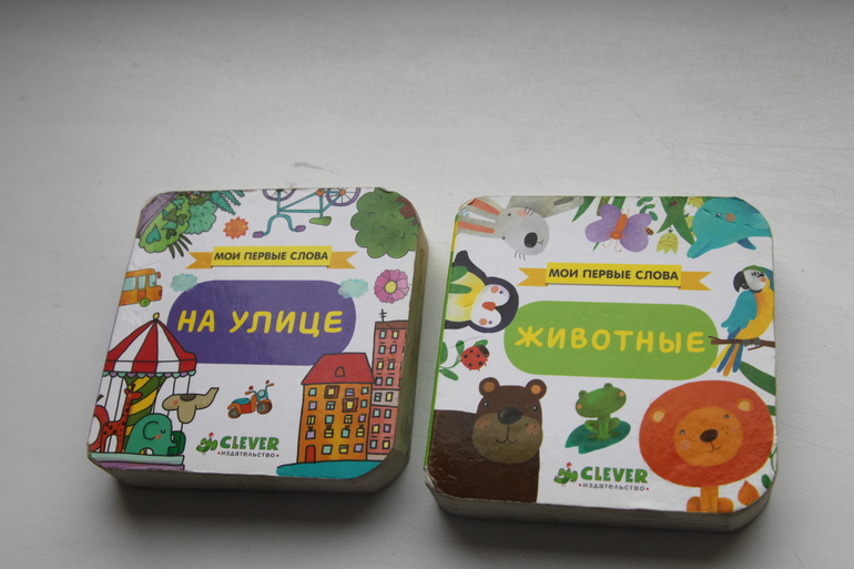 Автор не известен, как и художник. Купила бабушка, в каком - то магазине супермаркете. Маленькие, удобные, плотные. Очень толстый картон, с яркими картинками. Малышу нравиться их листать, носить по комнате, прятать в комод. Смотреть, находить кого - то или что - то знакомое и громко оповестить об этом ближайшего взрослого.