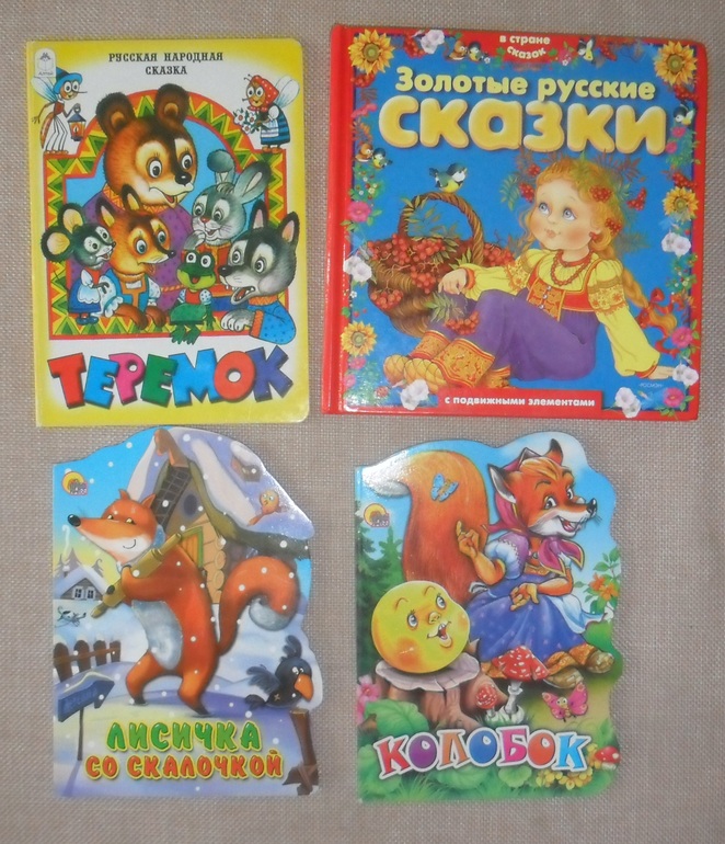 Потом я купила недорогие картонки с другими русскими народными сказками и они вообще у нас не пошли, не брал, смотреть не хотел. Колобка еще смотрели немного, но не слушал конечно