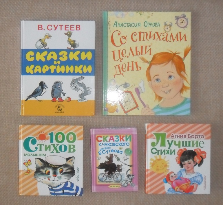 Еще появились вот такие книги, отложила их на будущее. Мы вместе их просмотрели, но к чтению маму не допустили, и смотрит не долго. Хотя стихи Барто и "100 стихов малышам" иногда мне приносит.
