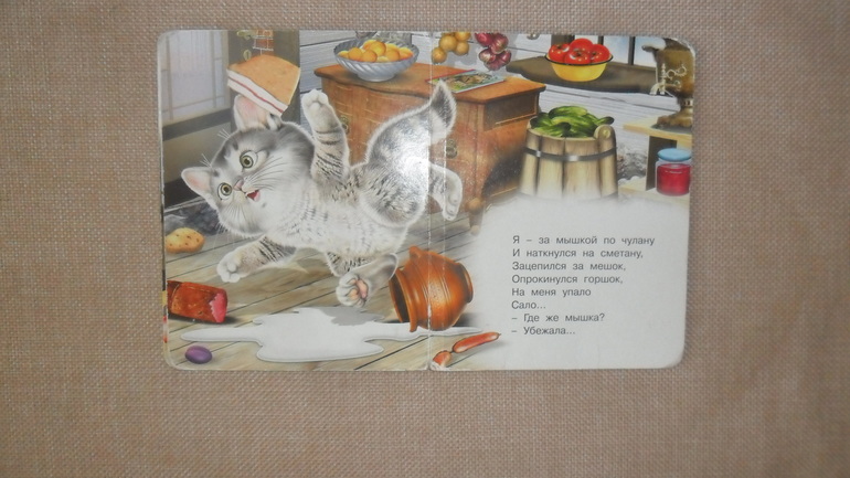 В начале напишу немножко о маленьком читателе. Когда я начала знакомить Петю с книгами, он спокойно лежал и слушал, листал странички. Даже каприз и плохое настроение сменялись на улыбку, если покажешь книжку. Так было примерно до 10 месяцев, потом сын пополз, а потом и пошел, и остальные полгода с книжками он спокойно не сидел и не лежал, как и сейчас. Так что я имею малыша, который слушать не будет, поэтому чаще мы смотрим картинки, он листает сам (я редко), и в это время я или рассказываю что там нарисовано, или быстро читаю, чаще рассказываю по памяти.