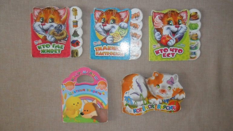 Когда я поняла, что уже с малышкового возраста можно приобщать к книгам и чтению, я потихоньку стала покупать книги и открыла для себя это сообщество. У нас появилось 3 книги про Тимку кота, книжка про котенка Барсика и книжечка с окошками (ее нам отдали)