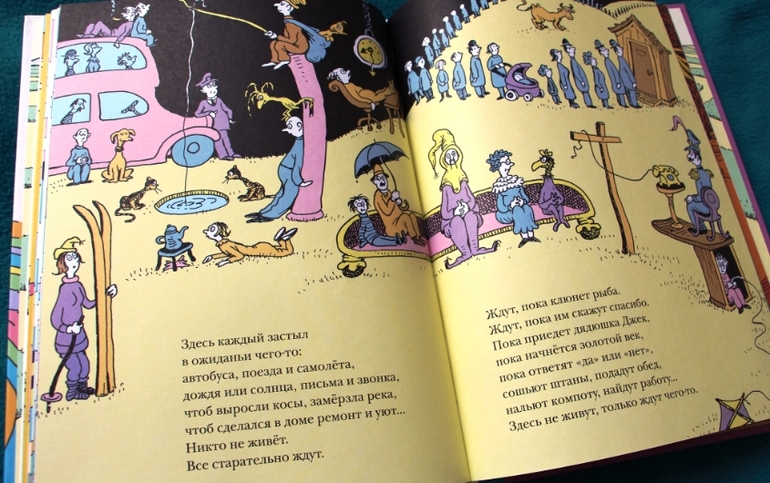 И самое интересное, что я окончательно поняла, что автор говорит о реальной жизни, когда наш малыш попал в «зал ожидания». Как нова оказалась мысль, что мы постоянно чего-то ждем: автобуса, звонка, весны, обеда. Получается всю жизнь ждем. Я так понимаю, что автор советует иначе относиться к жизни: не страдать, что весна все не приходит, а заняться интересным делом, например. Тут есть над чем мне еще подумать, но сначала надо прочитать еще разочек.