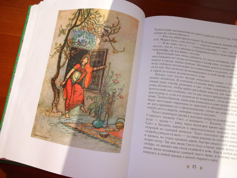 Небольшой, очень ладненький томик сказок, собранных в одной из областей Индии - Бенгалии. Невольно так и хочется сравнить его с вышедшим ранее собранием бенгальских сказок от ИДМ, и это вполне естественно, учитывая, что художник один и тот же - Уорвик Гобл.