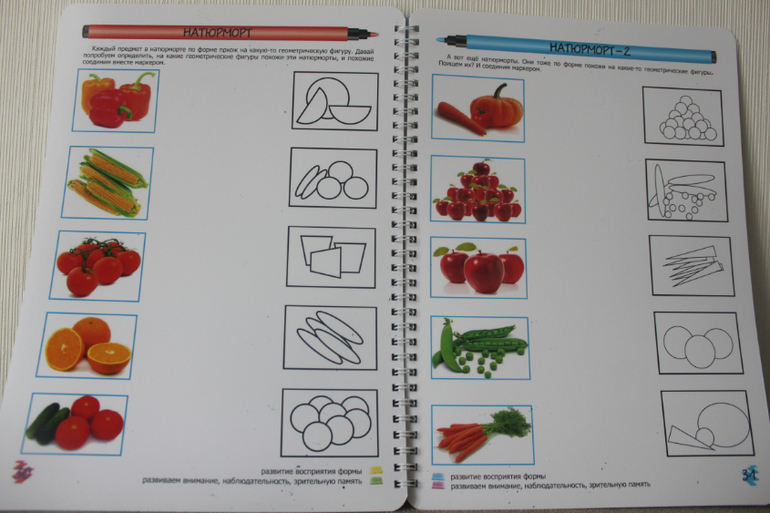 А эти рабочие тетради - одни из любимых у моего сына. В комплекте идет маркер, который можно стереть обычно салфеткой. То есть эти тетради многоразовые. Занимаясь по пособиям Фишер мы развиваем логику, моторику, внимательность, мышление, готовим руку к письму. А что для меня было открытием... Сын знает овощи, фрукты, мебель, животных и т.д., но не может их классифицировать, то есть,например, если нарисованы фрукты и овощи, он не всегда может определить, что относится к овощам, что к фруктам и т.п. мы всегда изучали такие понятия по разделам, то есть смотрим овощи, называем их, есть отдельные книги с картинками, даже раньше делили игрушки на группы по определенным признакам, но как выяснилось, в этом у нас большой пробел. Я, конечно, утрирую, но смысл, думаю, ясен. Тетради помогают систематировать знания ребенка о предметах, об окружающем нас мире.