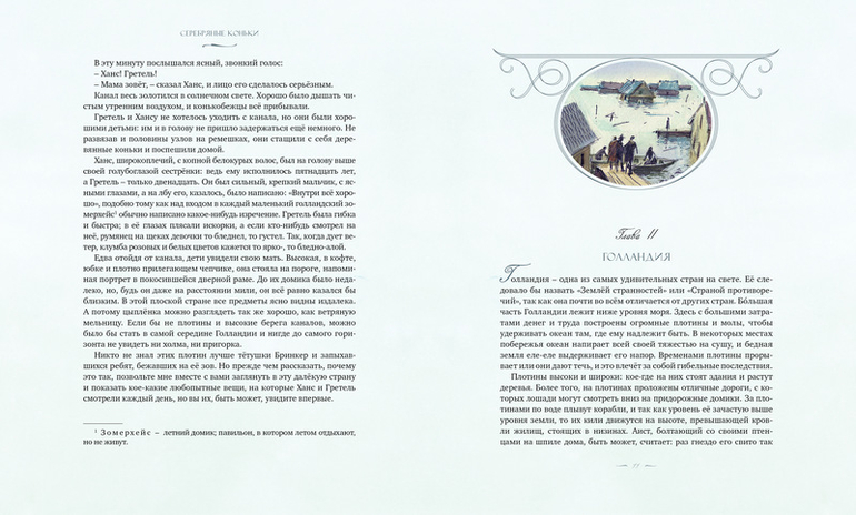 Книга американской писательницы Мэри Мейп Додж (1831-1905) повествует о жизни голландских школьников Х1Х столетия. В ней собраны исторические и этнографические сведения о Голландии, органично вплетённые в нить драматического повествования. Опубликованная в 1865 году, она принесла автору небывалый успех и сразу же сделала знаменитой. И даже спустя 150 лет эта история вызывает интерес читателей самых разных возрастов.